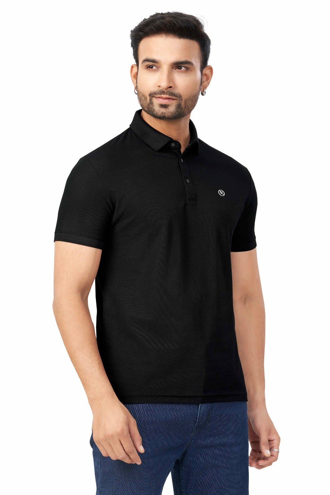 Black Plain Collar T-Shirt | Half Sleeve Sinker Fabric | Casual & Sports Wear