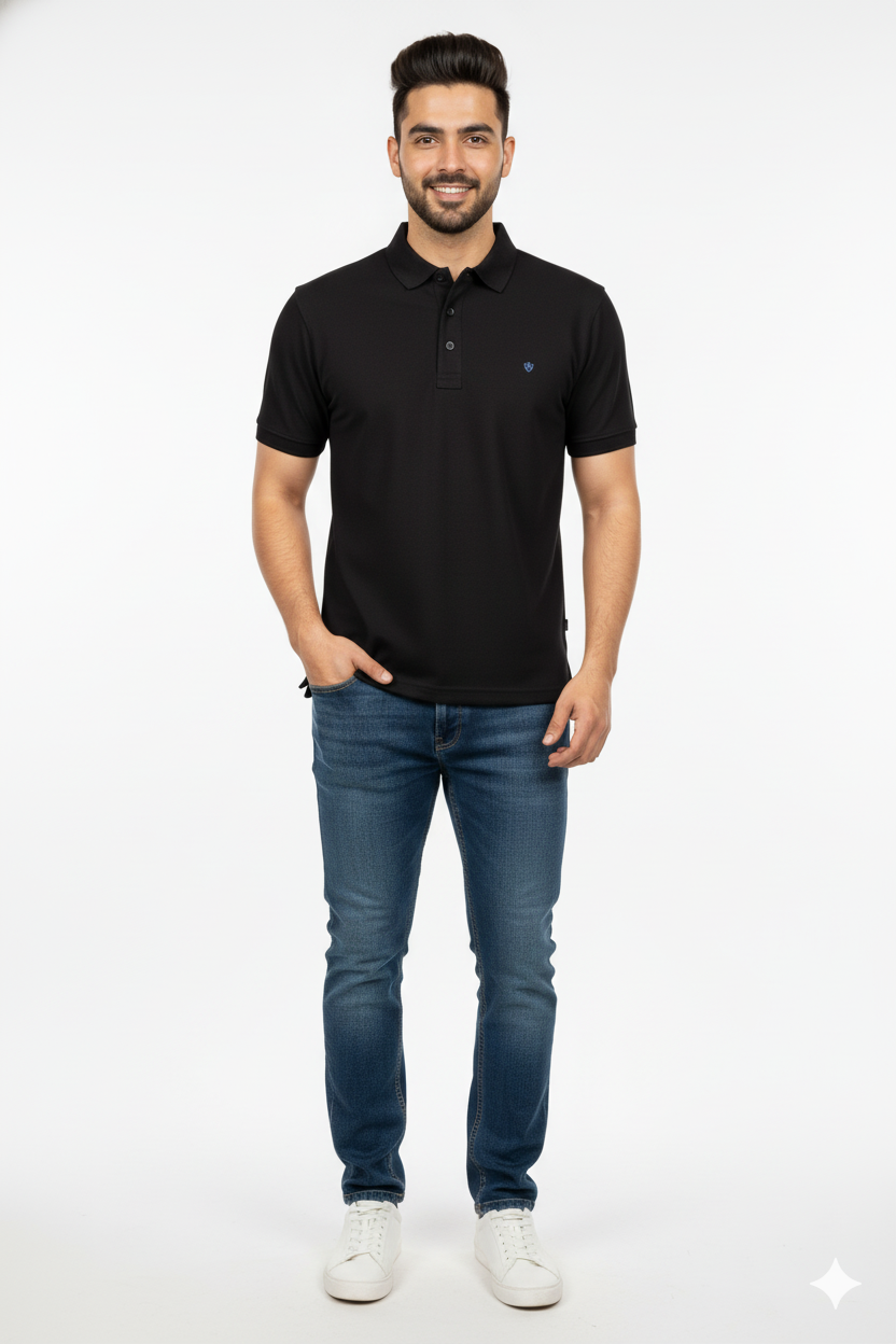 Black Solid Collared Half Sleeve T-Shirt for Men | Stylish & Comfortable