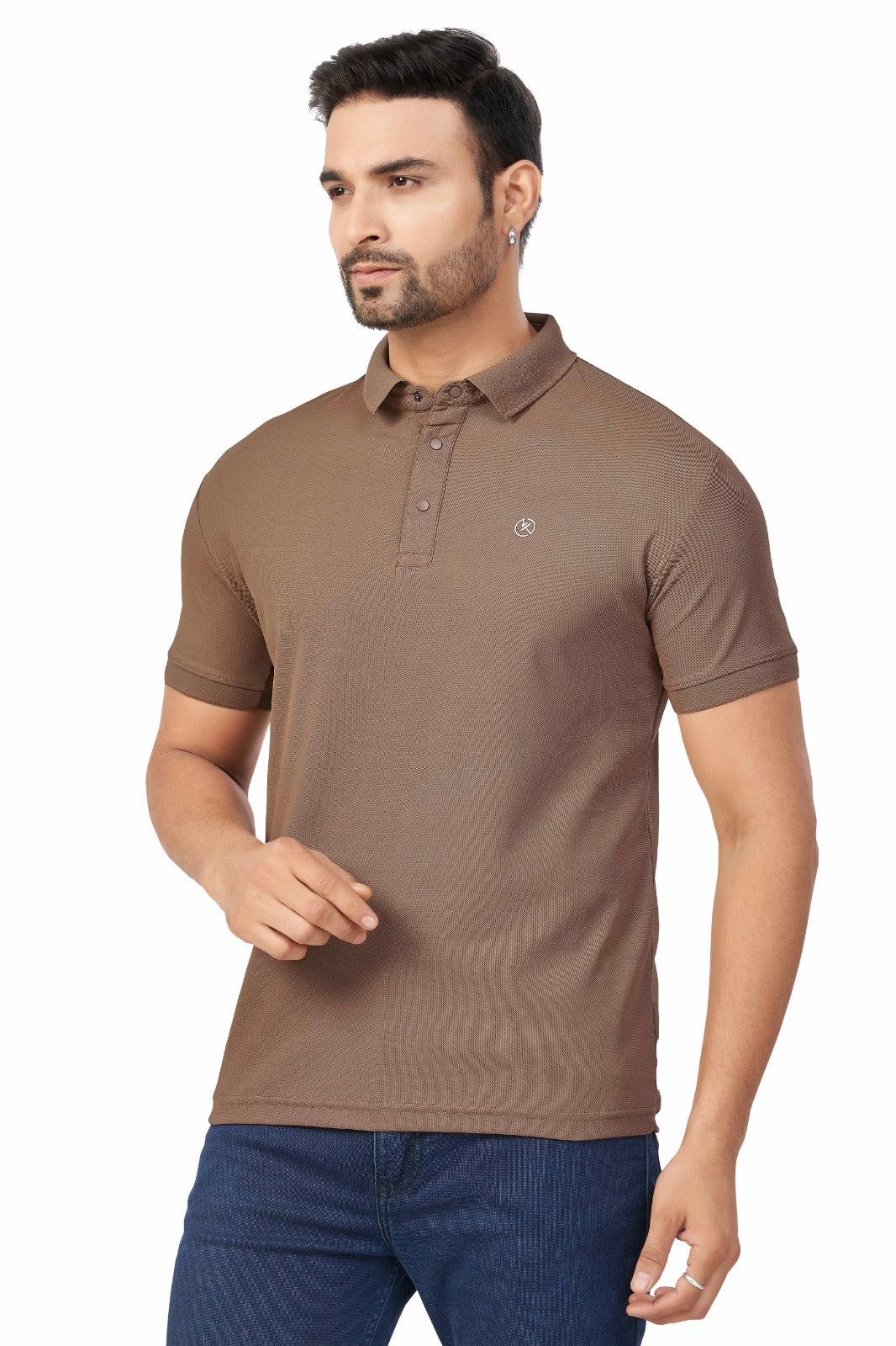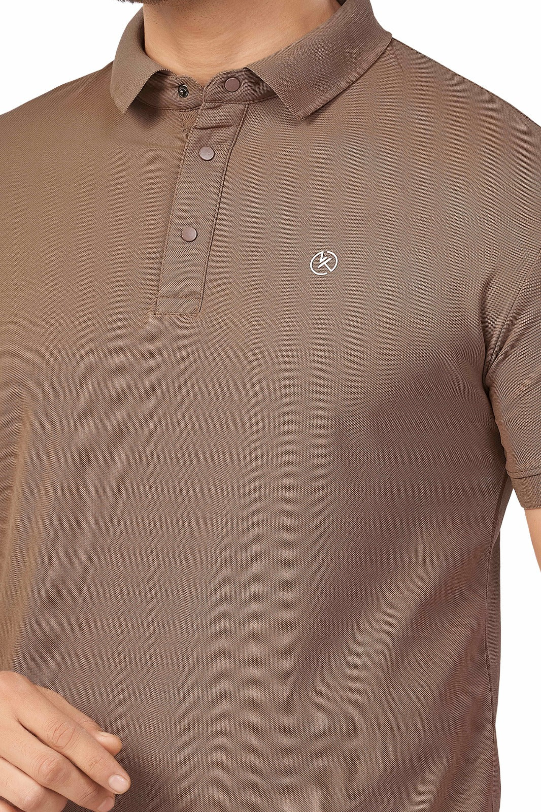 Coffee Plain Collar T-Shirt | Half Sleeve Sinker Fabric | Casual & Sports Wear