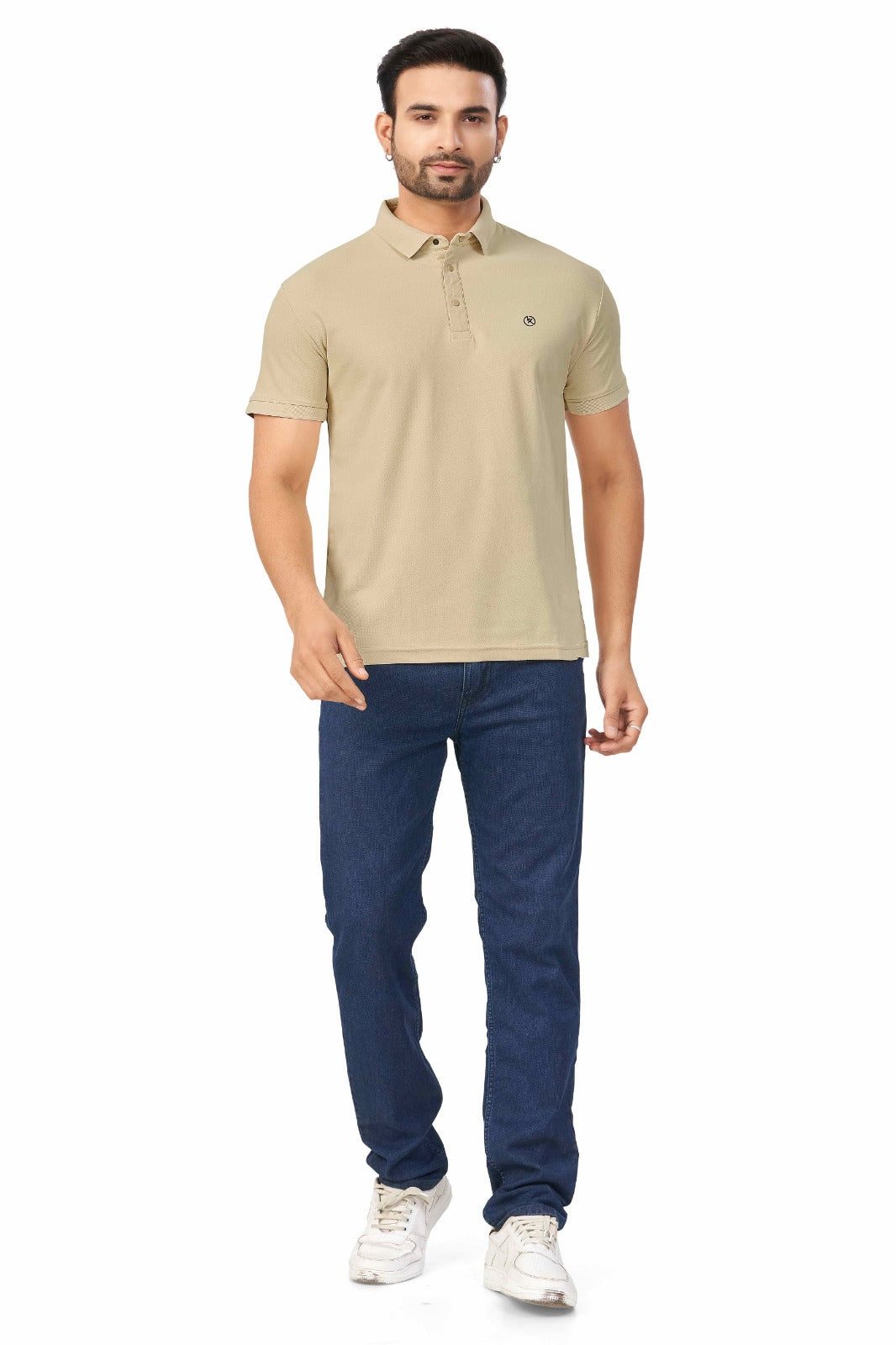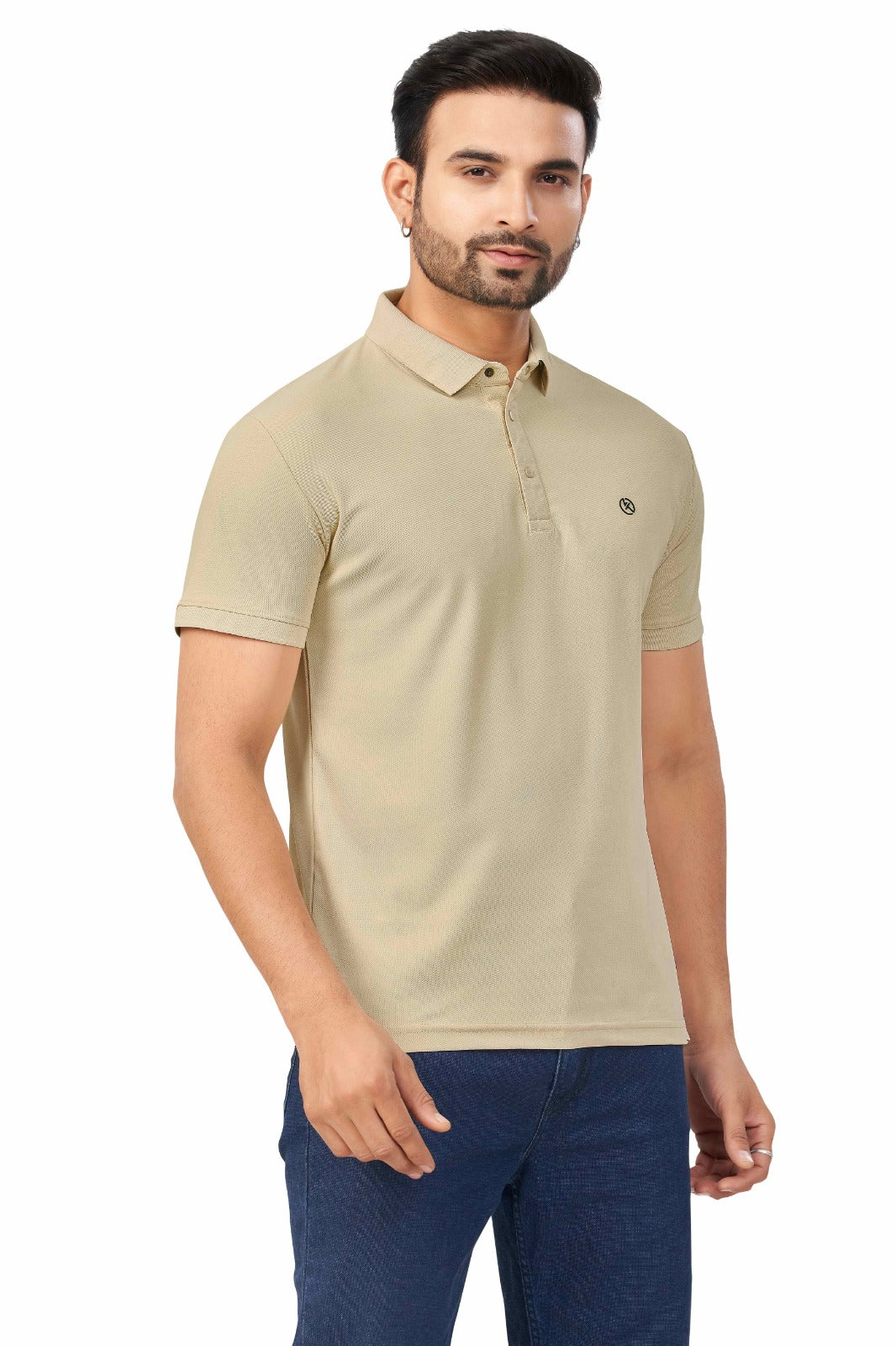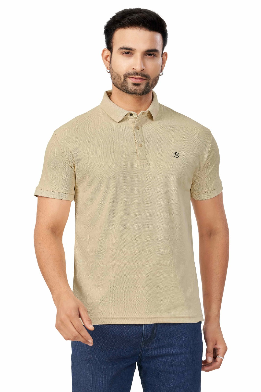 Cream Plain Collar T-Shirt | Half Sleeve Sinker Fabric | Casual & Sports Wear