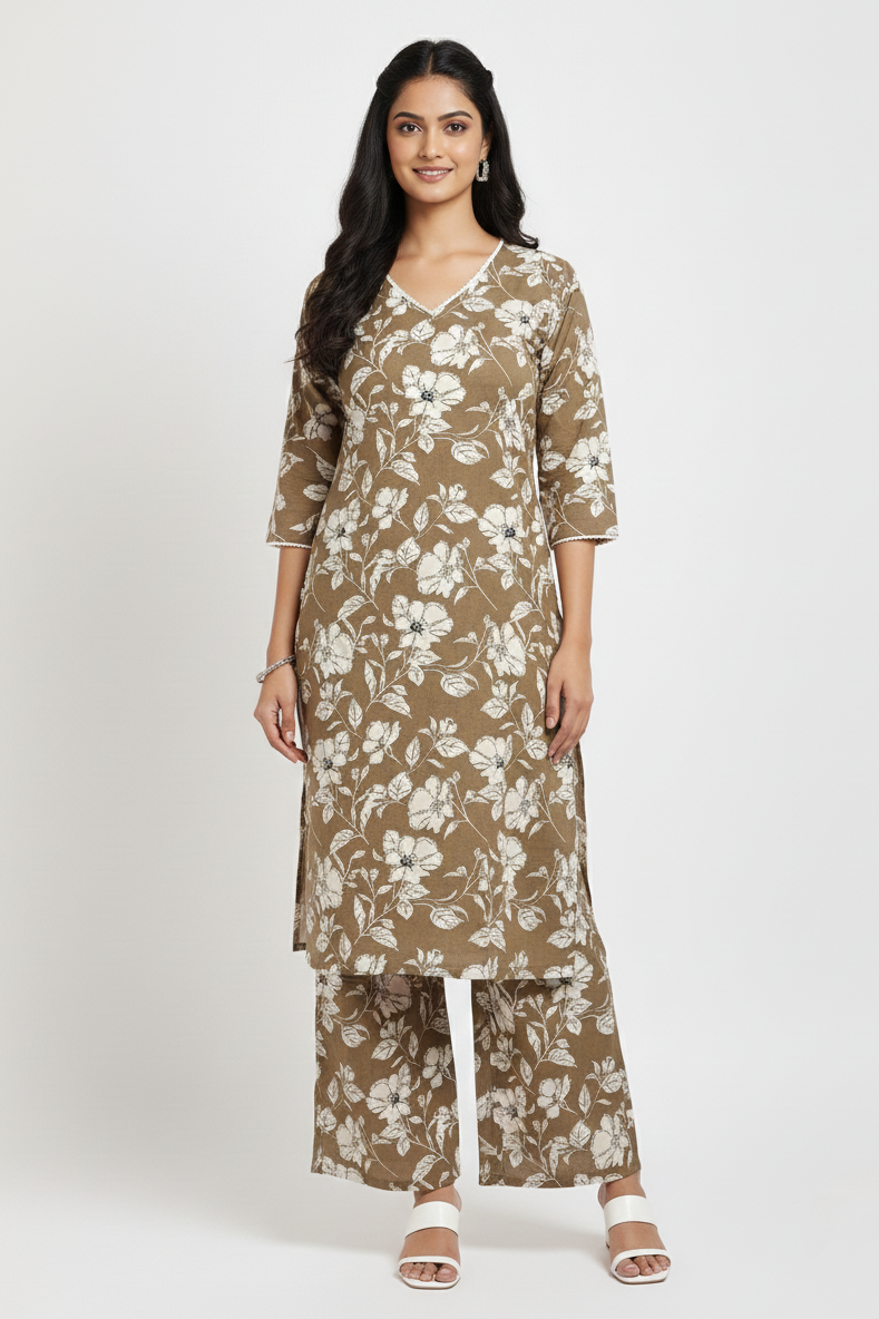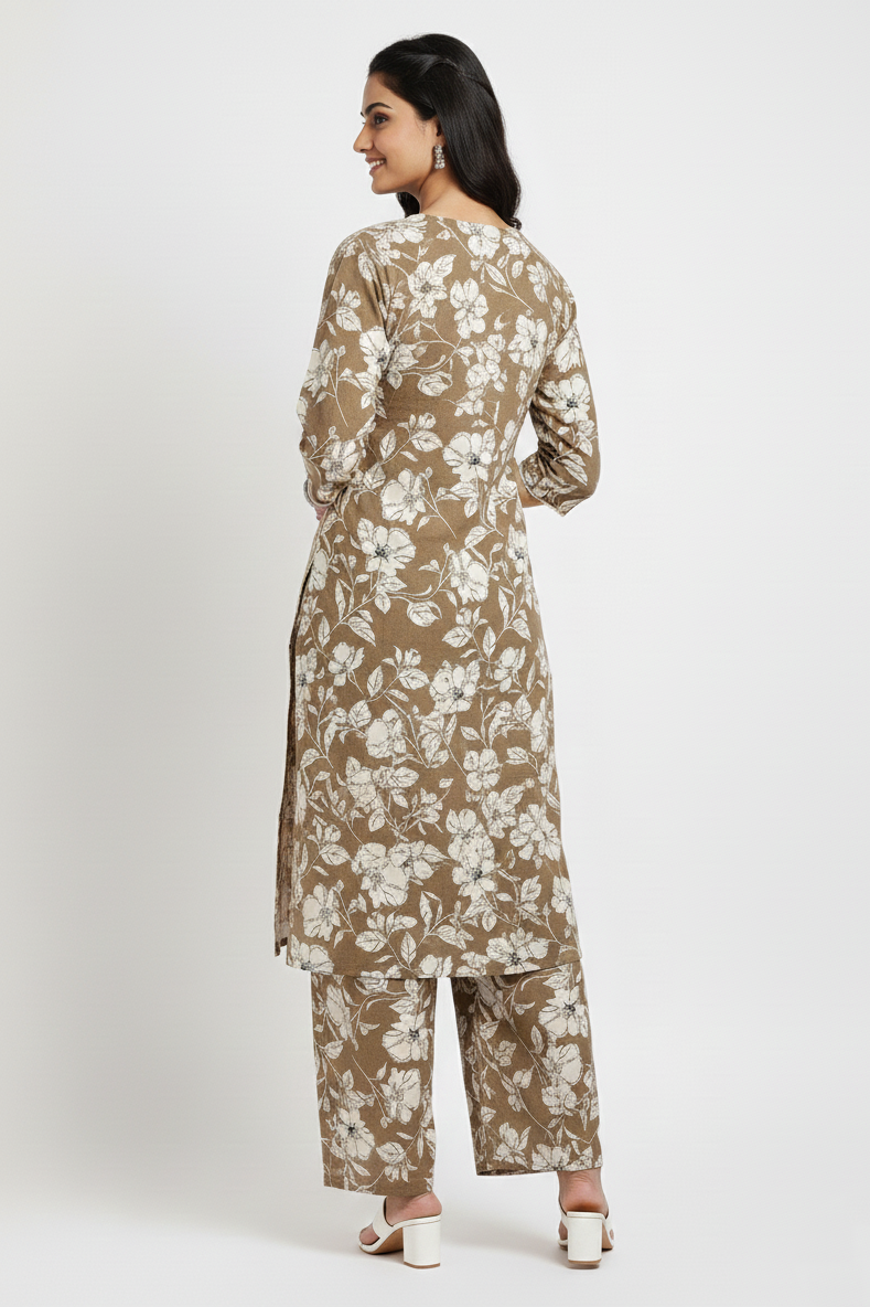 Ladies Floral Print Coord Set with| Brown colour-CR-251227693