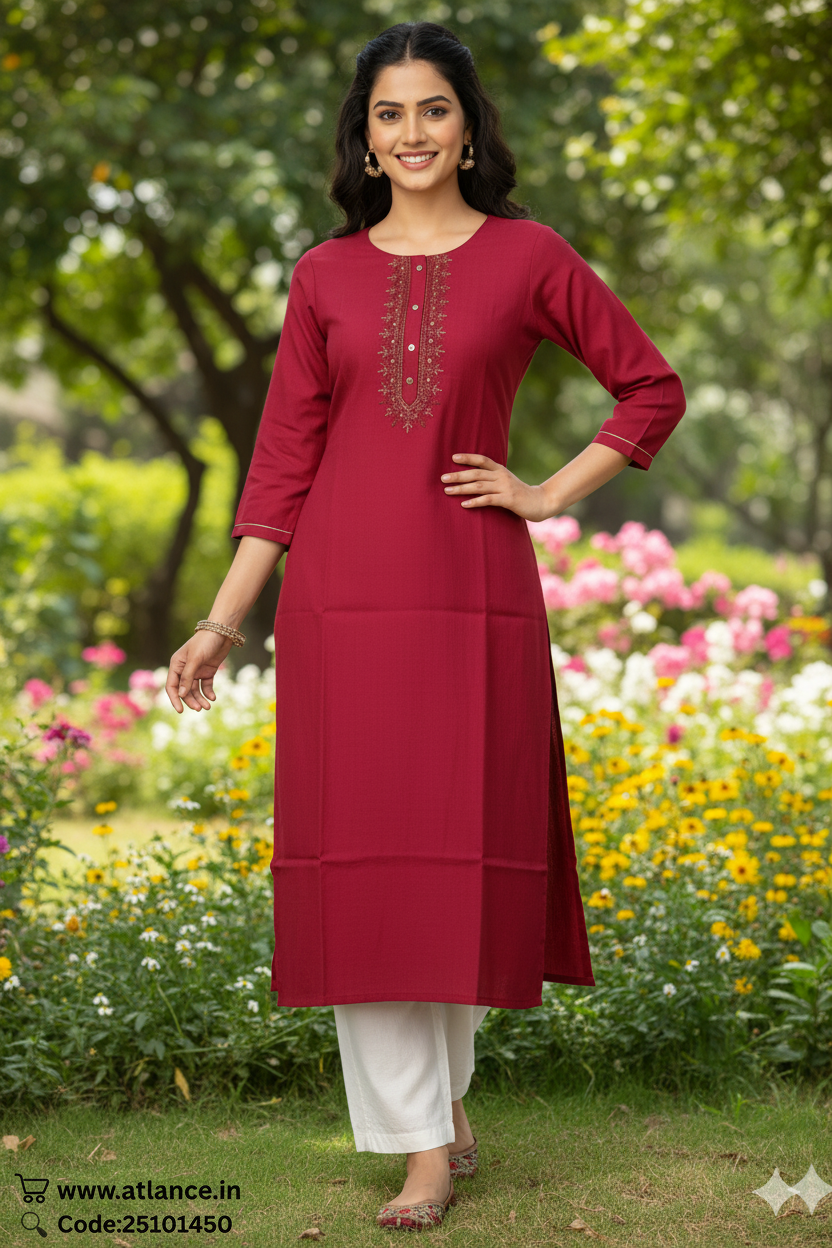 Maroon Embroidered Rayon Straight Kurta for Women