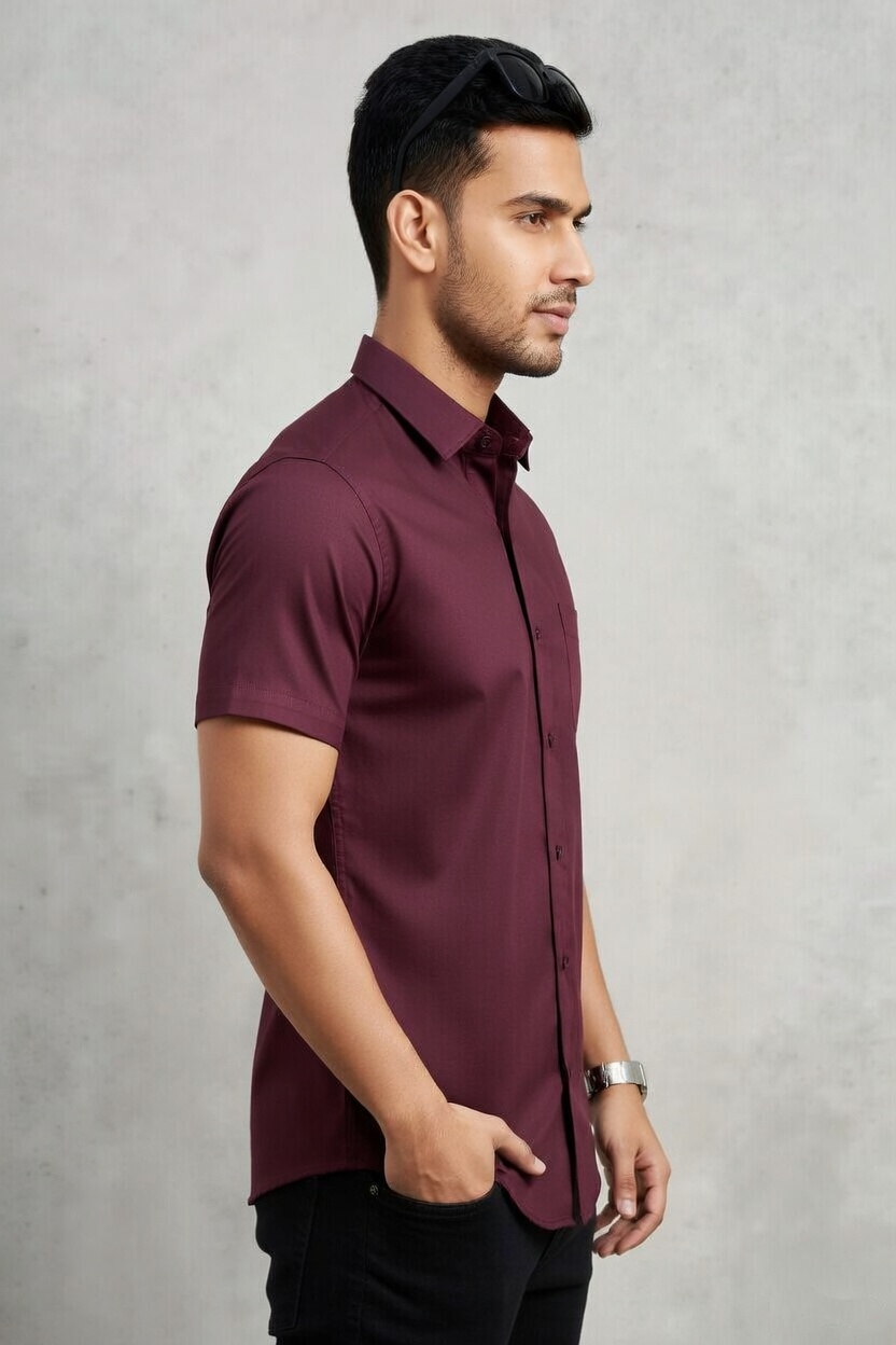 Men Casual Wine Short Sleeve Shirt - Cotton Comfort 261049774