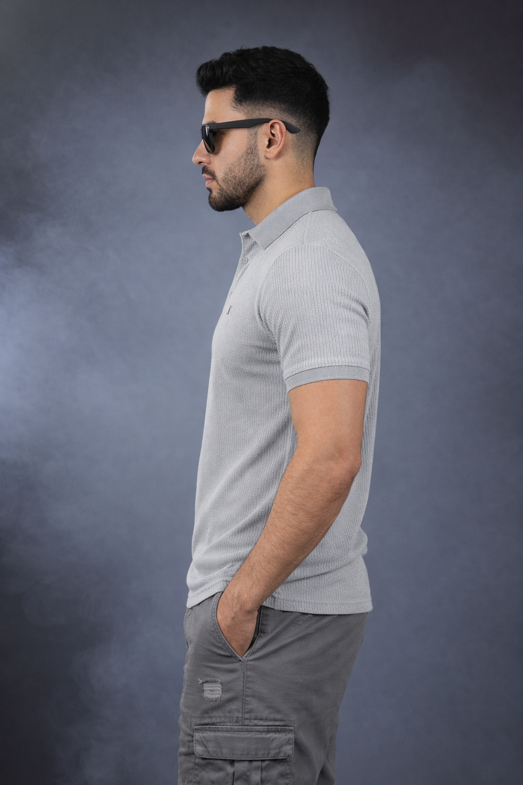 Men Light Grey Striped Polo T-Shirt | Modern Casual Style 261023952