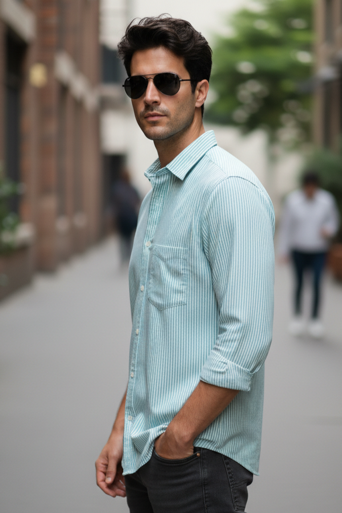 Men Pista Color Striped Cotton Shirt for Men
