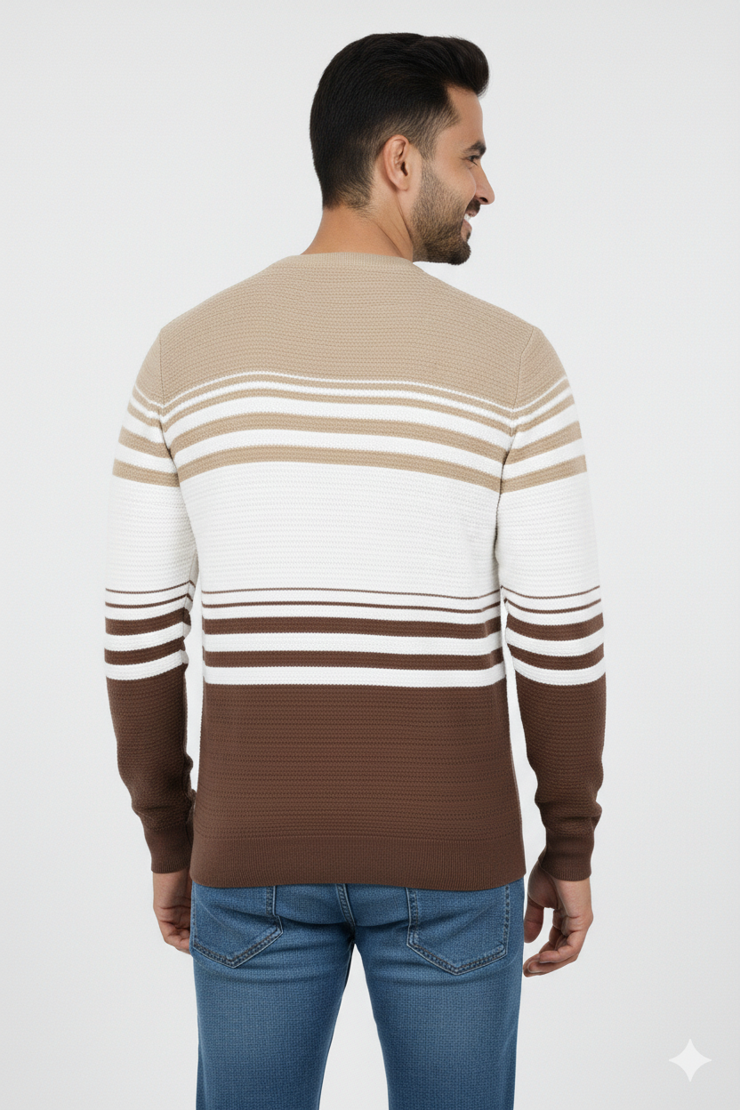Men Brown-Beige Striped Crew Neck T-Shirt | Textured 251200372