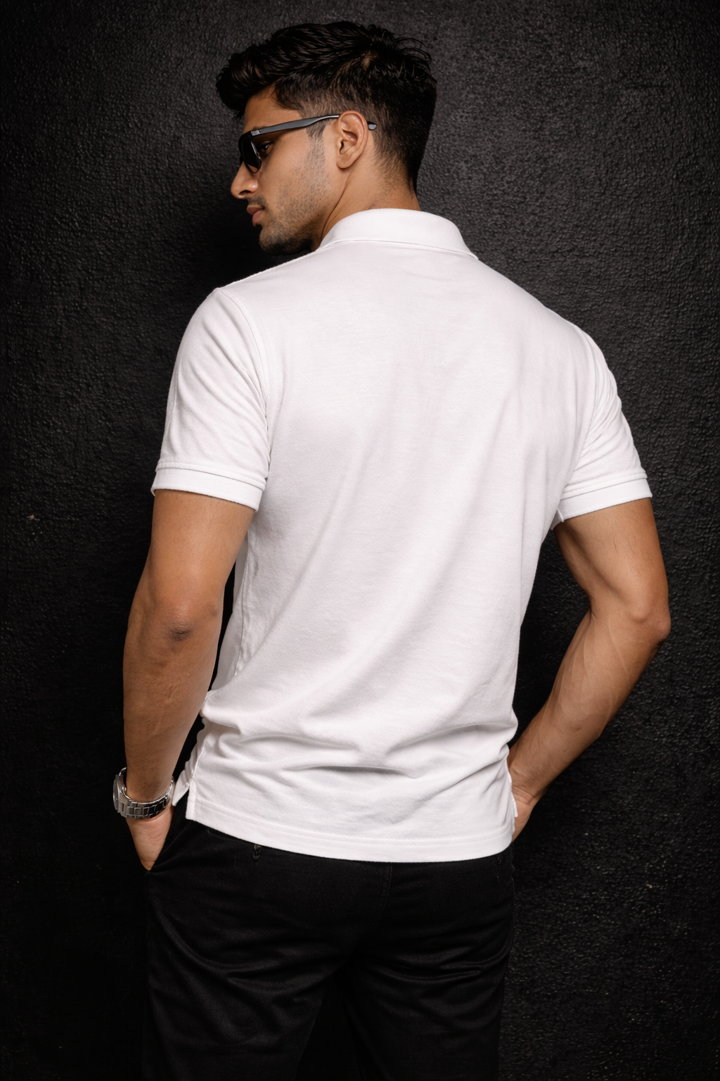 Men White Cotton Polo T-Shirt with Pocket - Casual Short Sleeve Slim Fit 8622