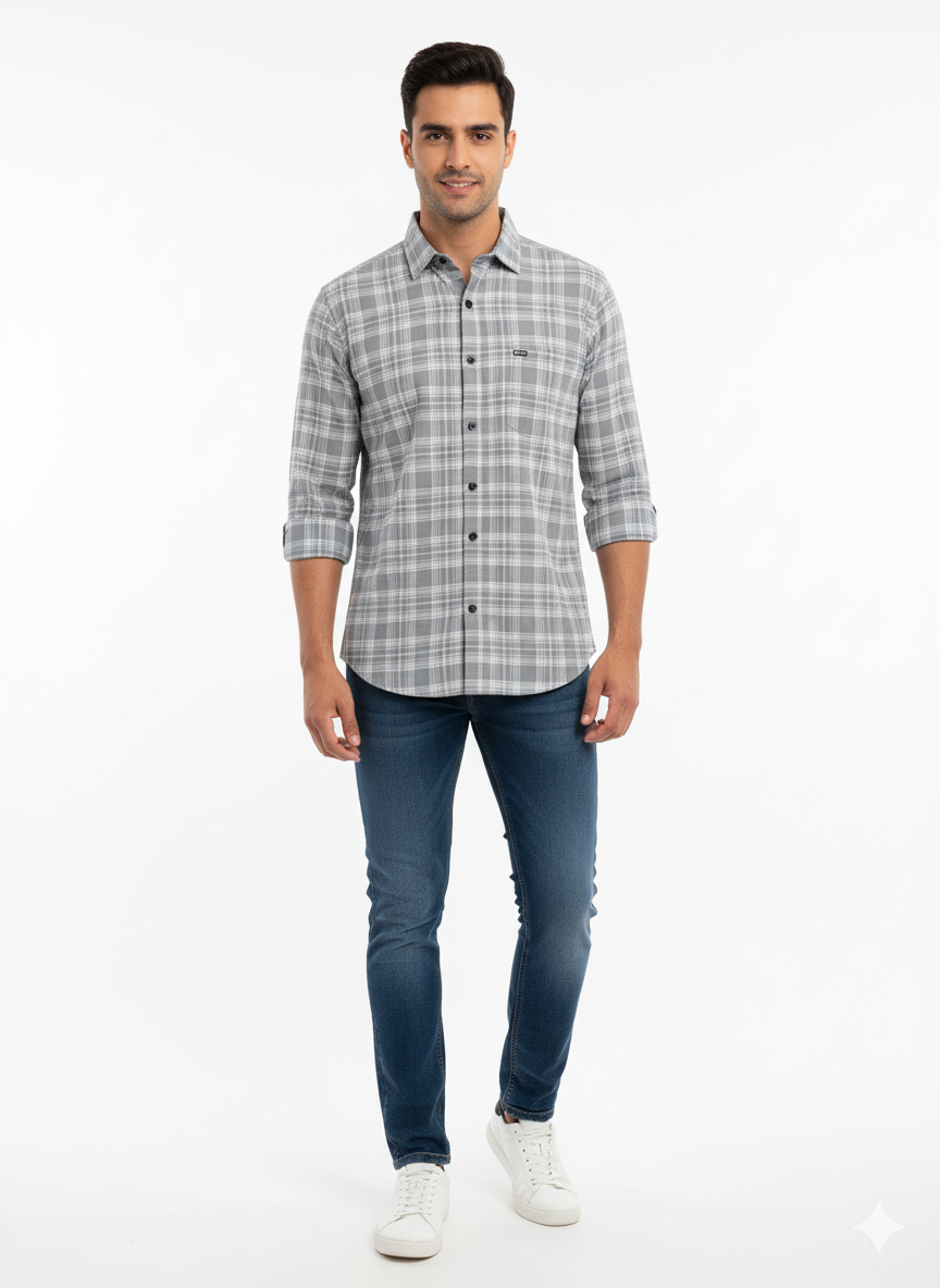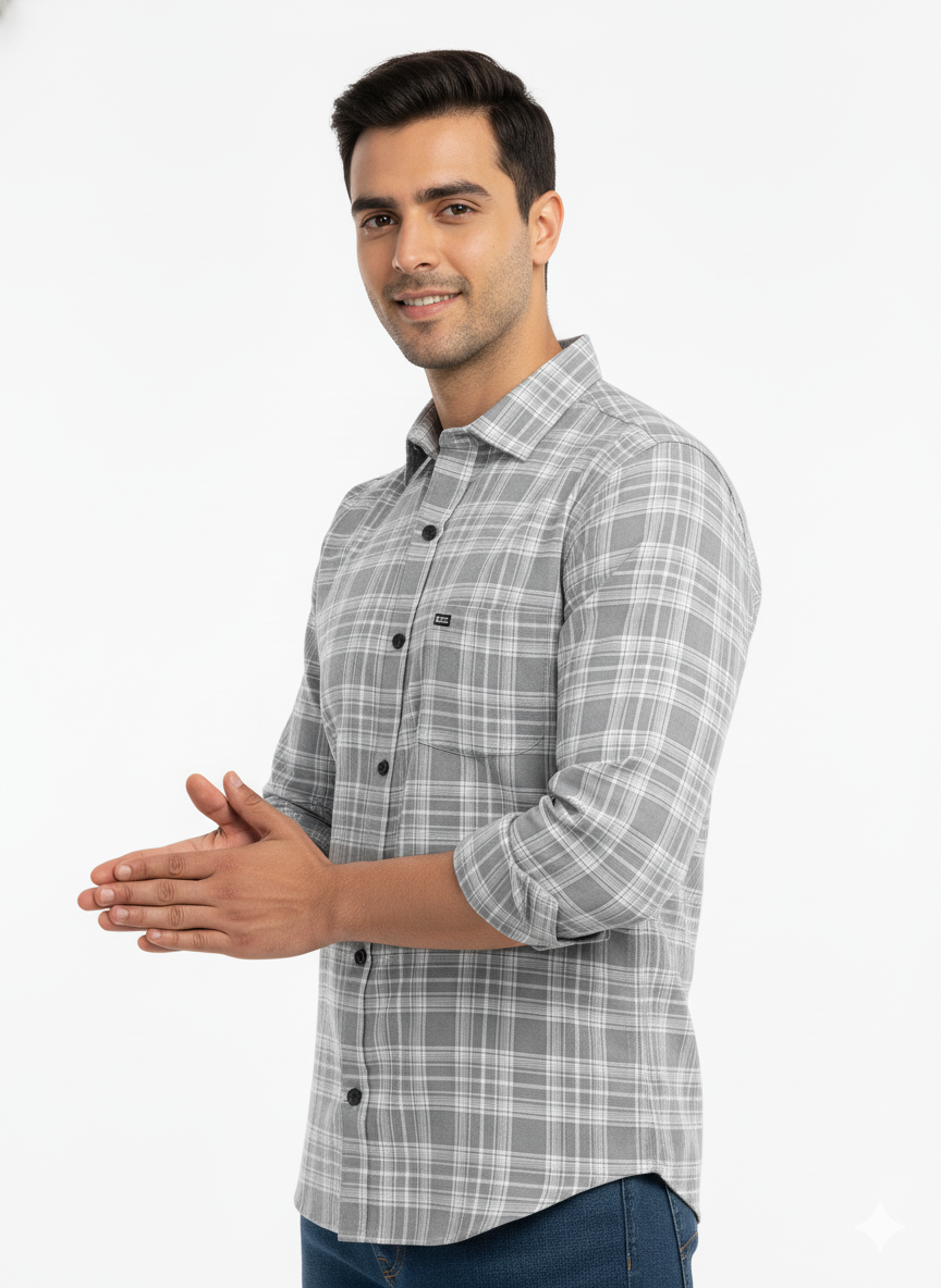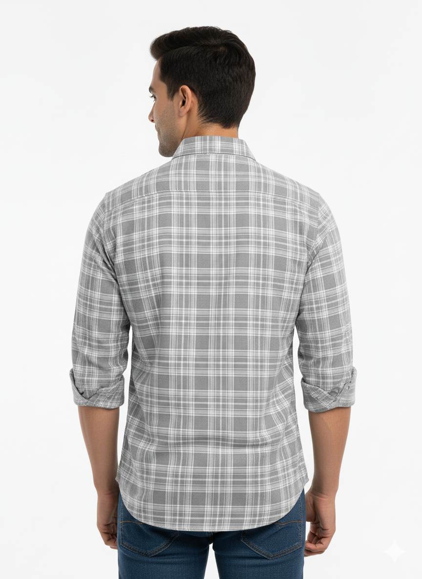 Men's Casual Check Shirt in Grey Color