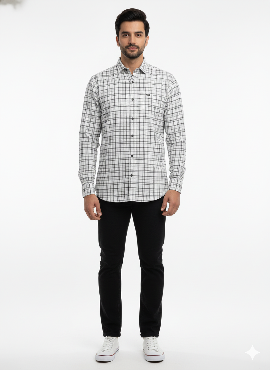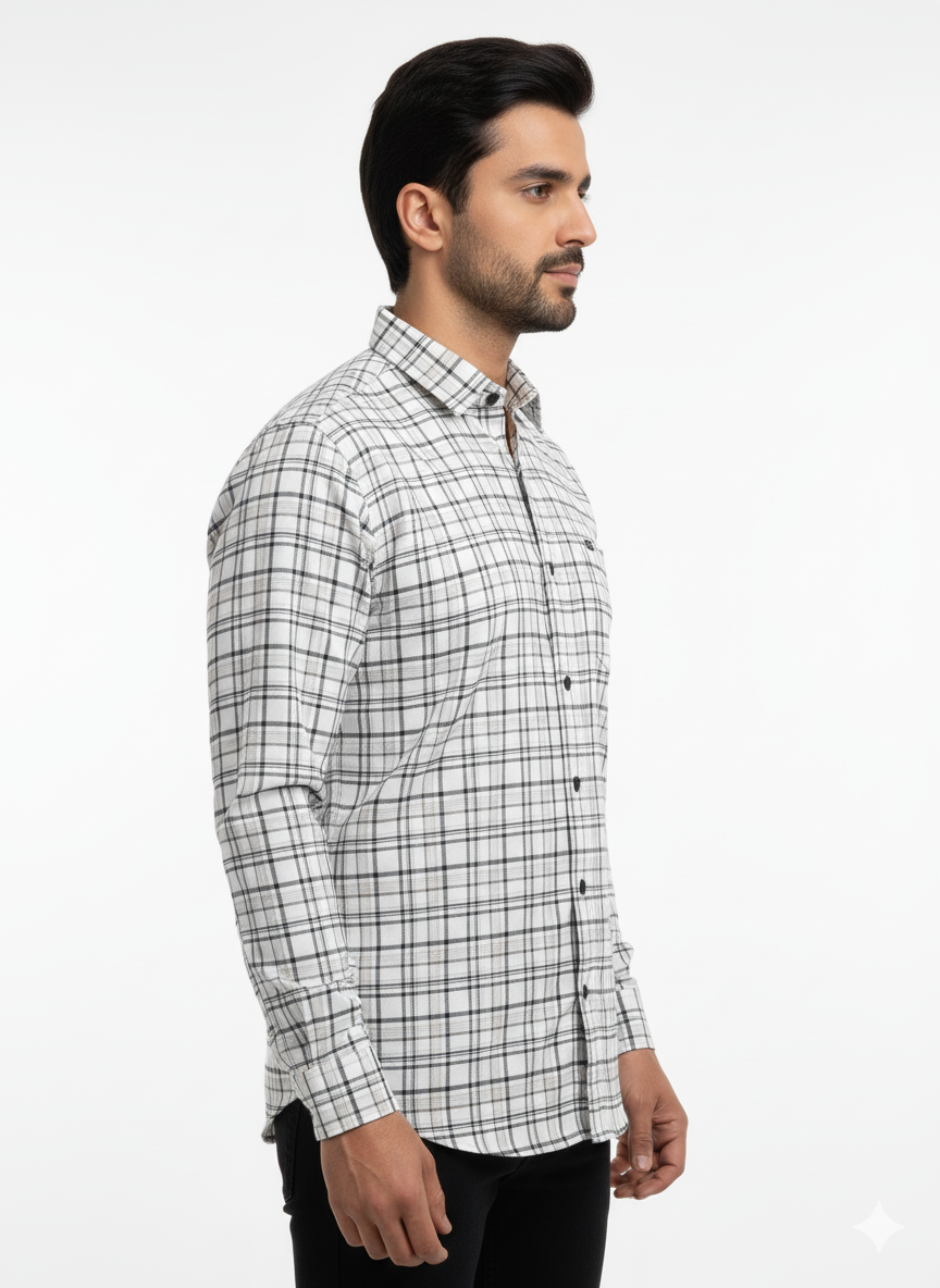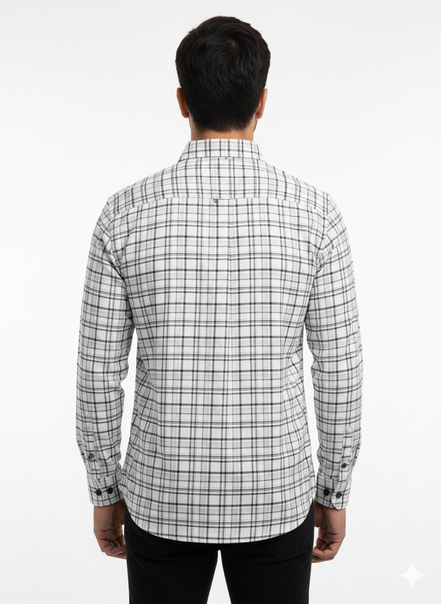 Men's Casual Check Shirt in Offwhite Color