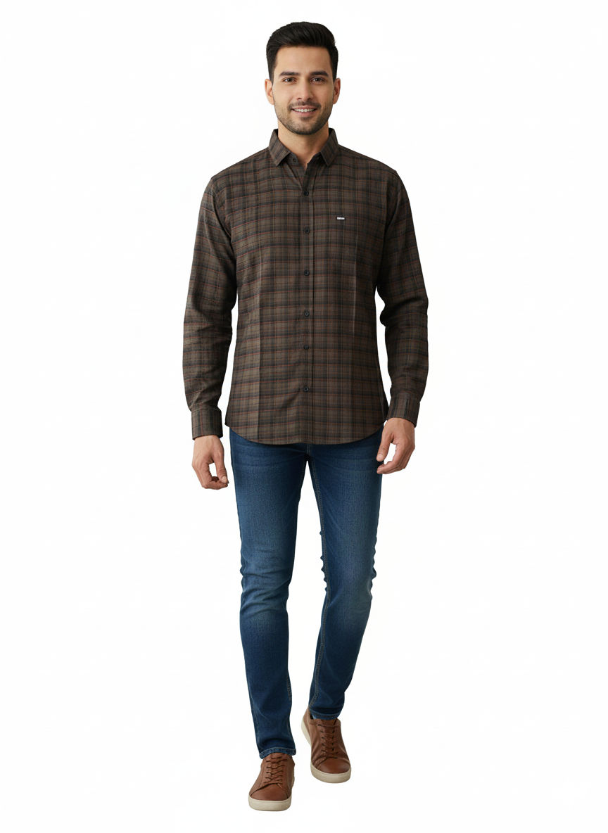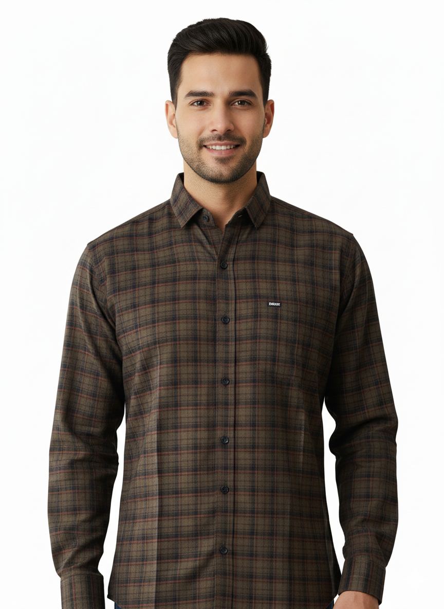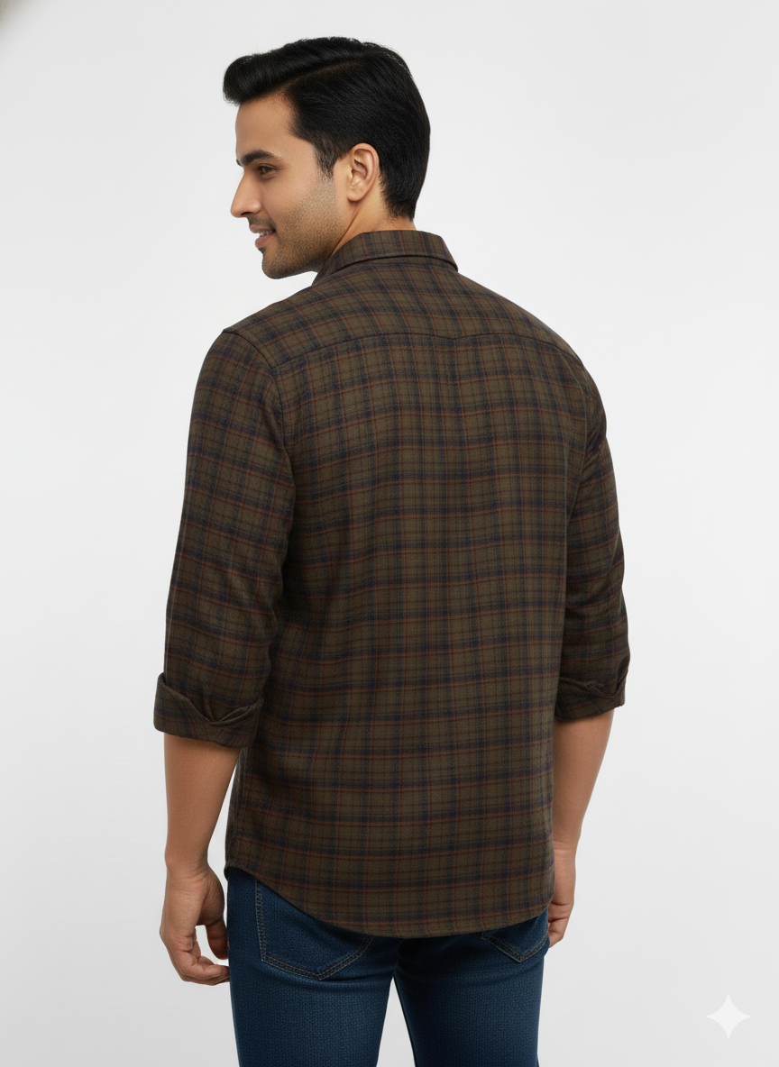 Men's Casual Check Shirt in Olive Color