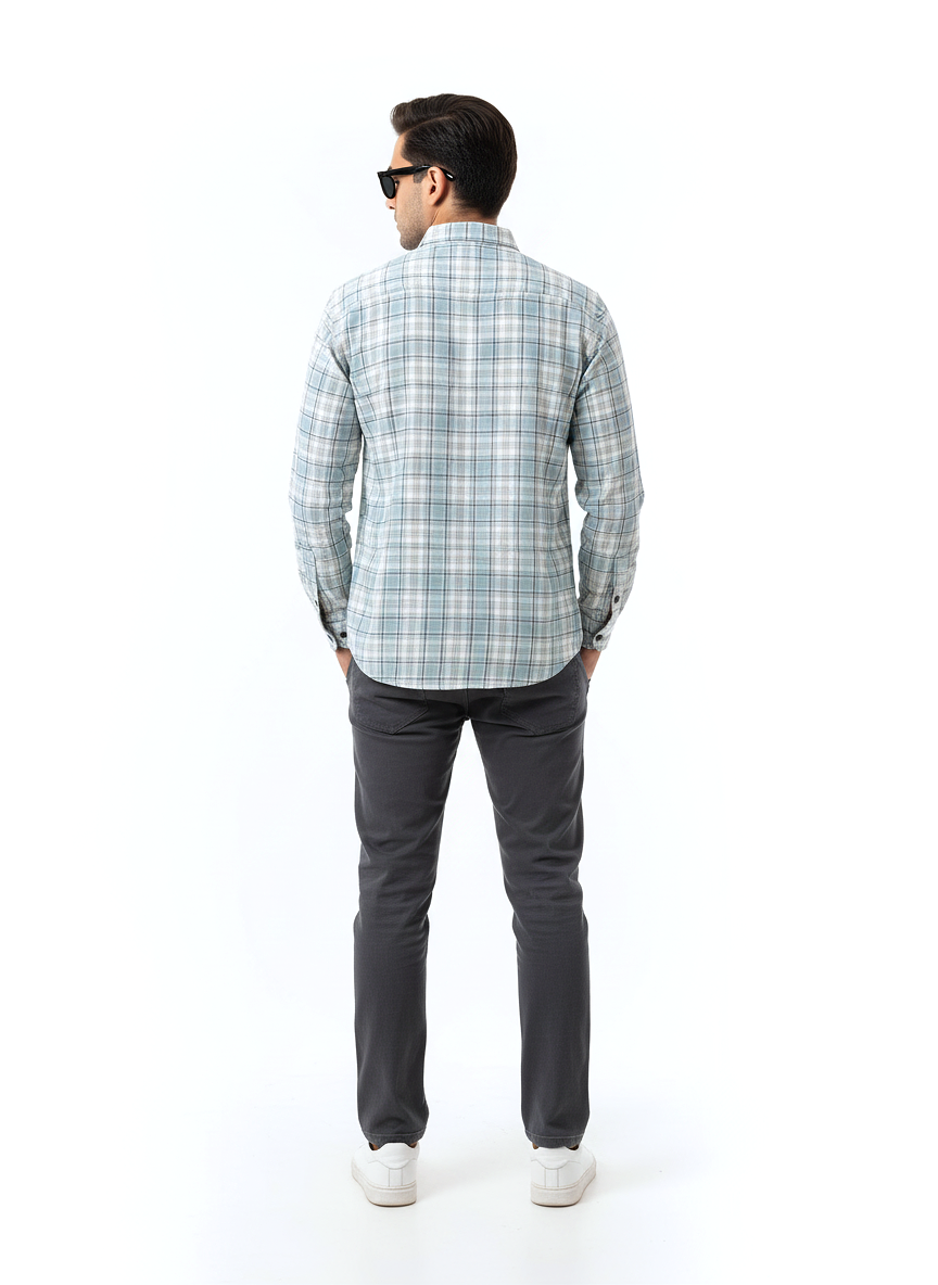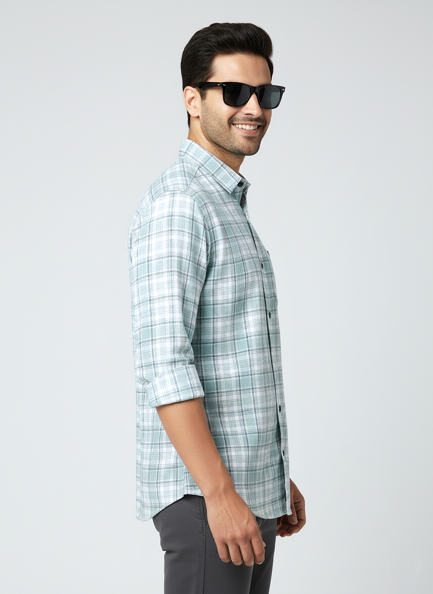 Men's Casual Check Shirt in Pista Color