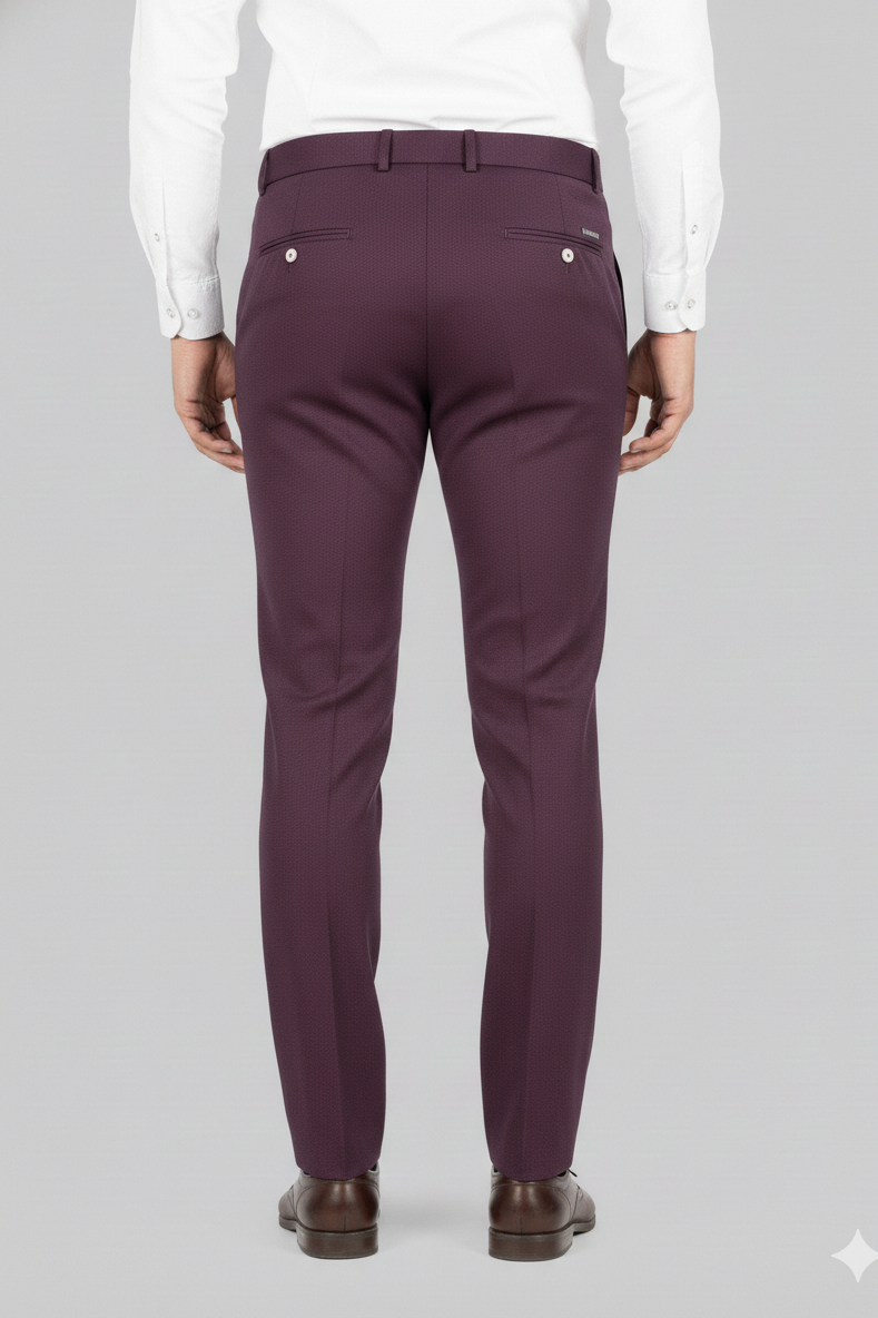 Men Slim Fit Formal Wine Colour Trousers for Smart & Casual 251078476
