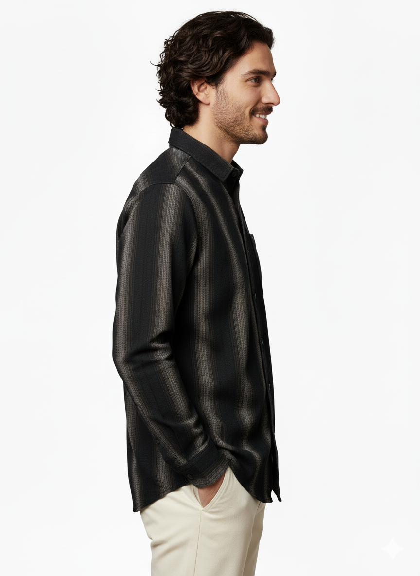 Vertical Striped Slim Fit Casual Shirt for Men | Dark Tones Coffee Color